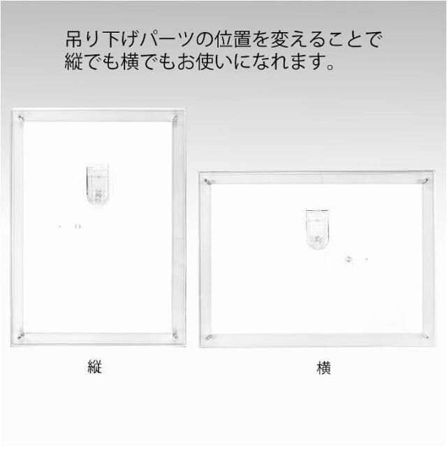 透明のアクリル板で両面から挟むタイプのフレームです。