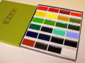 呉竹絵てがみ 顔彩耽美 24色セット 紅(32)・紅梅(34)・臙脂(36)・朱(31)・山吹(43)黄(40)・黄土(44)・鶯緑(54)・若草(51)・ 黄草(53)・青草(52)・蓬(58)・緑青(55)・ 群緑(57)・白緑(50)・白群(61)・群青(64) 浅葱(62)・藍(67)・紫(139)・岱赭(46) 焦茶(47)・黒(20)・白(10) 【特徴】 1.旬の色を表現出来る鮮やかな色の発色 2.旬な気持ちを描きとめられる溶けの早さ 3.100年の墨作り技術が実現した綺麗なにじみ 4.人に優しい安全・安心な原材料 |