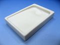 用途:写経用・添削用・彩墨用(日本画・俳画) 特長:墨、朱墨、彩墨、金墨がすれる 濃度の調整が簡単にできる 商品サイズ:60×90×15mm 商品重量:134g 金銀墨、朱墨、彩墨といった黒以外の墨を磨る硯 もちろん普通の墨も磨れますが、色物の墨は その色合いを見る時に、黒い普通の硯で磨ると、 硯の色と干渉し合い正確な色合いを見ることが 出来ません。 また、磨る事により硯も少しづつ減りますのでその粉も 絵具の中に混ざり特に白い色は影響を受けやすく なります。 この白陶硯はそういった点を改良し金銀墨、朱墨、 彩墨、写経用金錠などの専用の硯として開発した ものです。 従来の硯同じように使って頂いても大丈夫です。 充分使用に耐える逸品です |